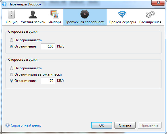 Яркий пример. Клиентская программа Dropbox. Раздел настроек пропускной способности канала. (Обычно он сам нормально регулирует загрузку, но для, например, ADSL приходится ручками подкручивать.)