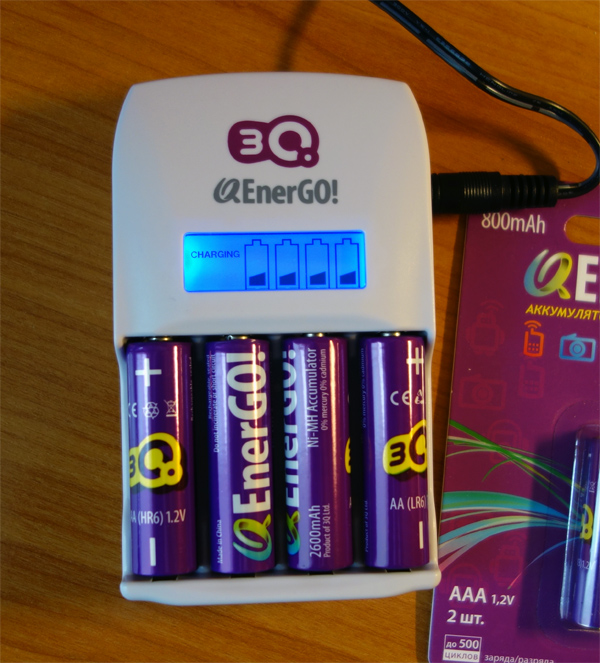 Зарядка интересная - с ЖК-дисплеем, на котором показывается уровень заряда по каждому аккумулятору. Удобно.