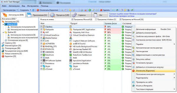 Нашел очень удобную програмку мониторинга автозагрузки в Windows - StartupStar (платная). Каждое приложение в автозагрузке она позволяет: активировать, деактивировать, отложить запуск (задается в минутах), блокировать повторное включение в автозагрузку (это очень ценно, а то знаю я некоторые программки, которые туда ломятся постоянно), удалить.