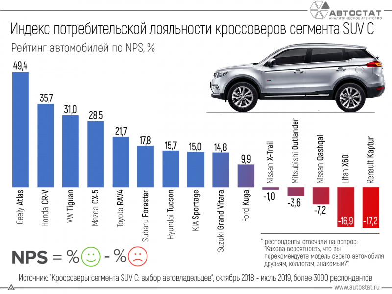 Как интересно. В аналитическом агентстве "Автостат" составили индекс потребительской лояльности кроссоверов сегмента SUV C.