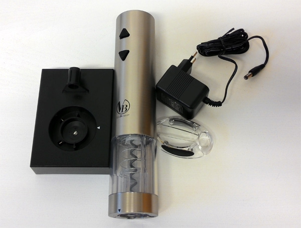 Я писал уже об одном электрическом пробочнике (не нашел эту заметку). Он благополучно помер через 5 месяцев после покупки. Не то чтобы ему приходилось уж слишком трудиться (открыть 2-3 бутылки в выходные - смешно), но долго они просто не живут. Прикупил следующий электрический пробочник - вот такой (стоил, как обычно, в районе 25 евро). Просто когда на них подсаживаешься, уже даже фирменные официантские - не прикалывают. Хочется прогресса.
