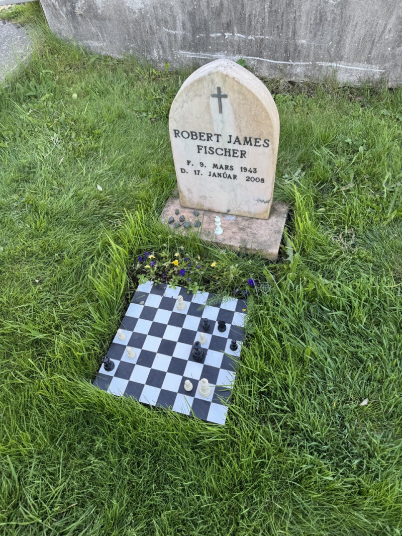 Могила Бобби Фишера. Как известно, ему в США грозило уголовное преследование, он уехал в Исландию и жил там в Рейкъявике. Но похоронили его в маленьком городке Селфосс, что в 50 км от Рейкьявика.