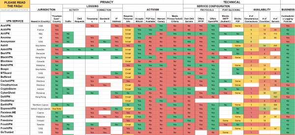 Пользователь Reddit под ником ThatOnePrivacyGuy первым провёл масштабное сравнение 125 популярных VPN-сервисов и занёс результаты своей работы в таблицу Google Docs. На его труд обратило внимание издание Lifehacker. (Отсюда.)