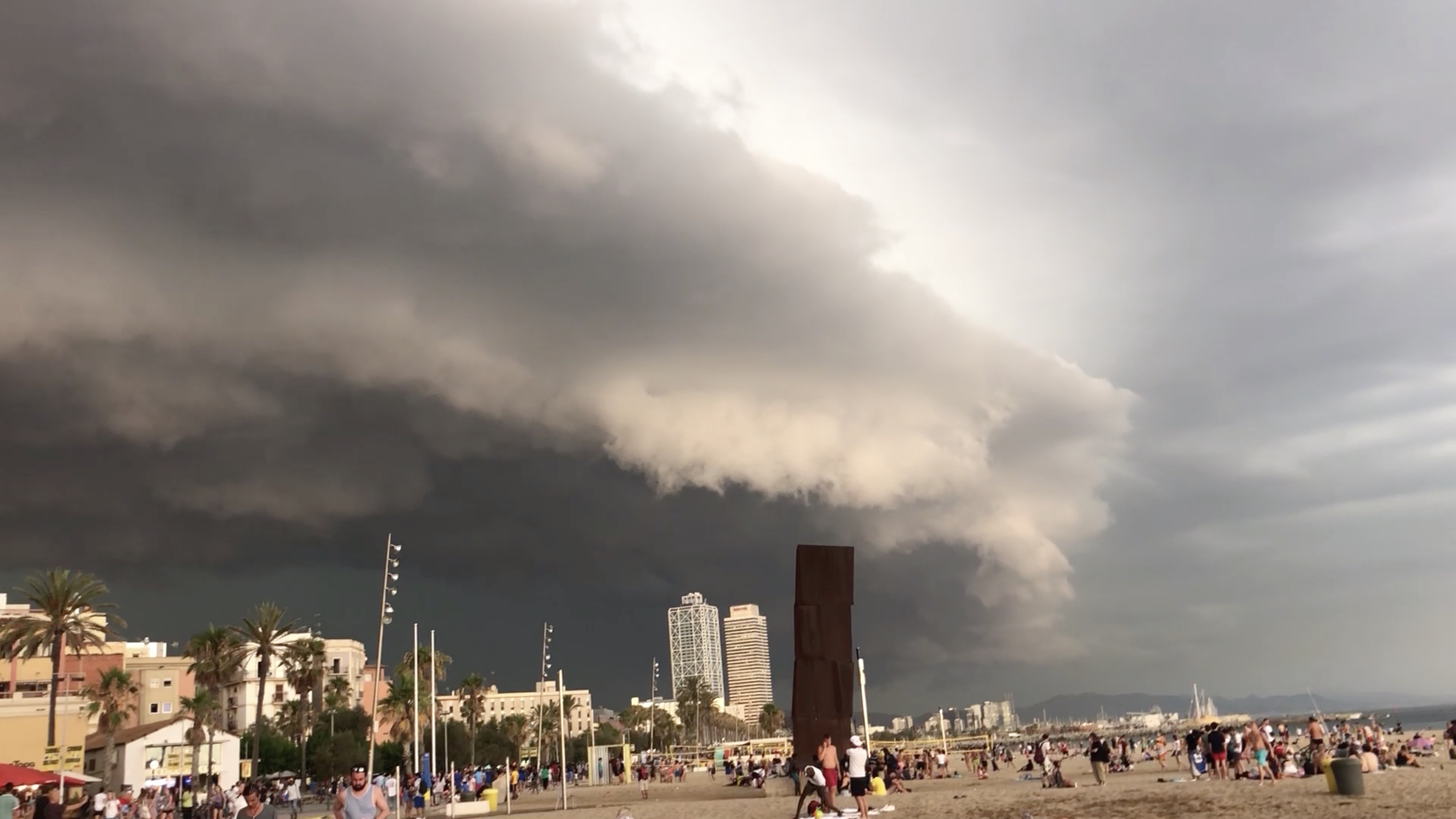 В Барселоне несколько дней назад наблюдалось очень редкое явление - так называемый грозовой воротник. Это когда белые облака образуют некий вал на границе грозового фронта. Турист из Австралии заснял это дело. Жалко только, что у него смартфон хреновый и стабилизации видео нет.
