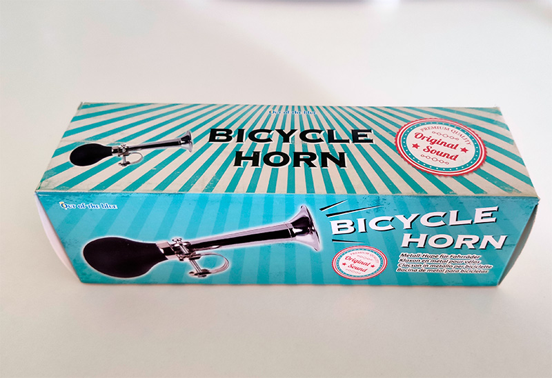 Клаксон для велика. В Германии нашел. Громкий, но не чрезмерно. Вот так звучит.