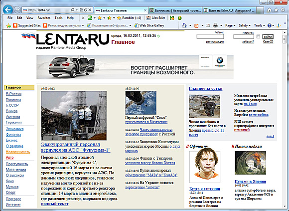 Информация: Экслер.ру - один из самых посещаемых персональных авторских проектов Рунета. Его каждый день посещает порядка 65 тысяч уникальных посетителей, которые просматривают под 300 тысяч страниц (это без форума). Также еще примерно 20 тысяч человек читают трансляцию моего блога с Exler.ru в ЖЖ.