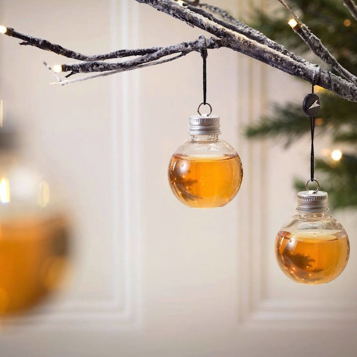 Слушайте, ну идея же совершенно роскошная! В британской ликеро-водочной компании The Lakes Distillery решили, что елочным игрушкам ни к чему пылиться одиннадцать с половиной месяцев в году. И они выпустили свои елочные игрушки - с алкоголем. Вы можете выбрать виски, водку или джин, причем для водки и джина также можно выбрать из трех вариантов. Стоимость набора из 6 игрушек - $41. В каждую игрушку входит 50 миллилитров алкоголя. (Что-то маловато, на мой взгляд.)