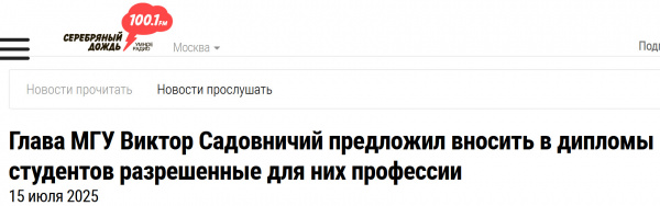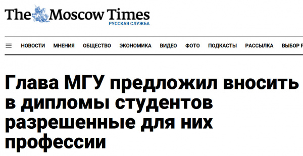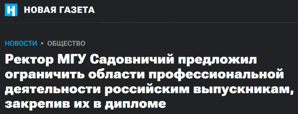 В дипломы россиян захотели вносить список разрешенных профессий. С такой идеей выступил бессменный ректор МГУ Садовничий.