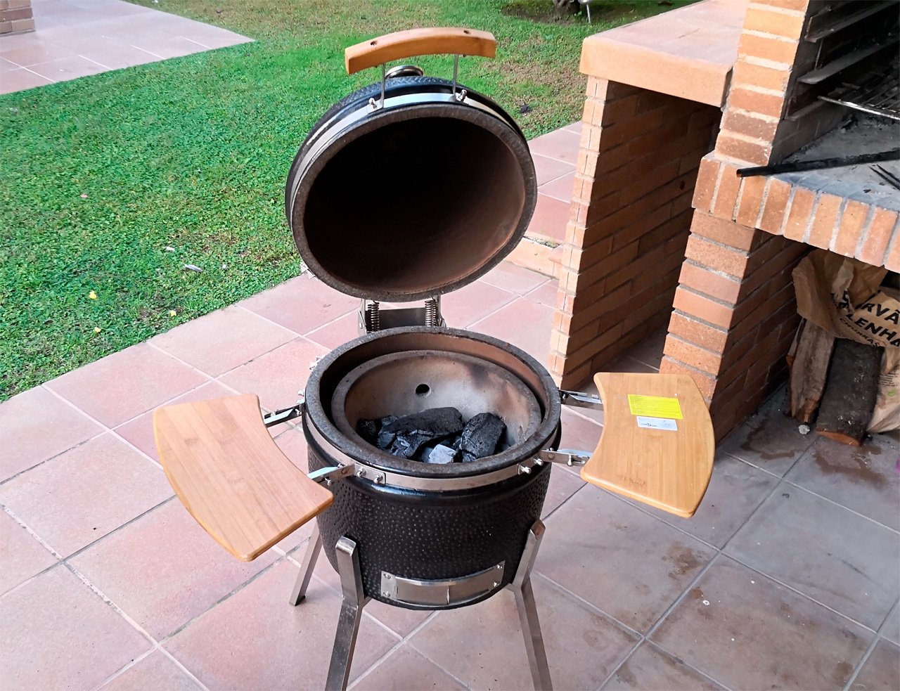 Вся эта толстенная керамика - для теплоемкости. С открытой крышкой гриль довольно медленно теряет тепло, а при закрытой крышке его очень быстро набирает. И температура внутри гриля может достигать 400 градусов.