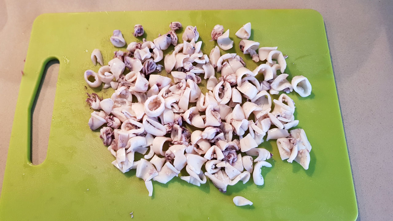 И я, перебрав несколько вариантов, в конце концов нашел практически идеальный вариант: упаковка в 450 граммов замороженных очищенных мелких кальмарчиков.