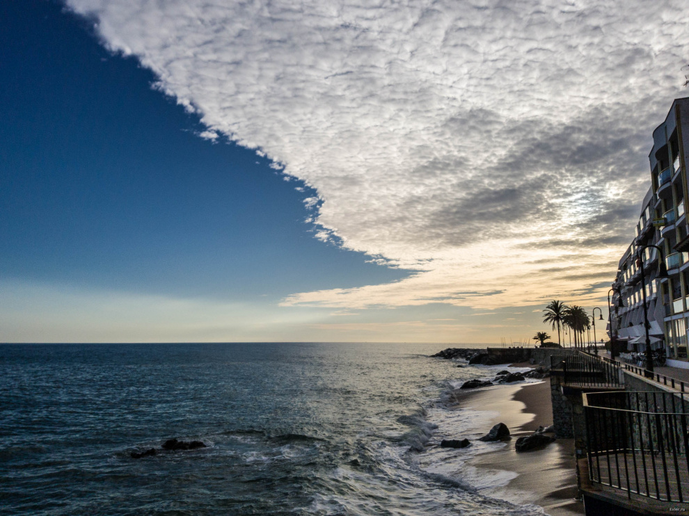 Поснимал немного вечерком в соседнем городке Сан-Поль-де-Мар. Городок расположен в небольшом заливе, ну и там закаты, конечно, намного красивее, чем в нашей Калейе, где берег совершенно ровный.