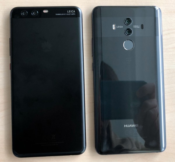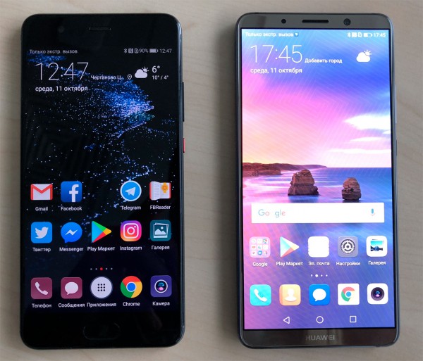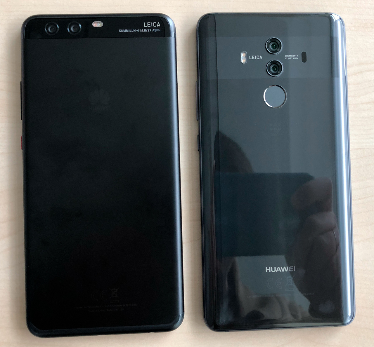 Слева P10 (в металле), справа Mate 10 (в стекле).