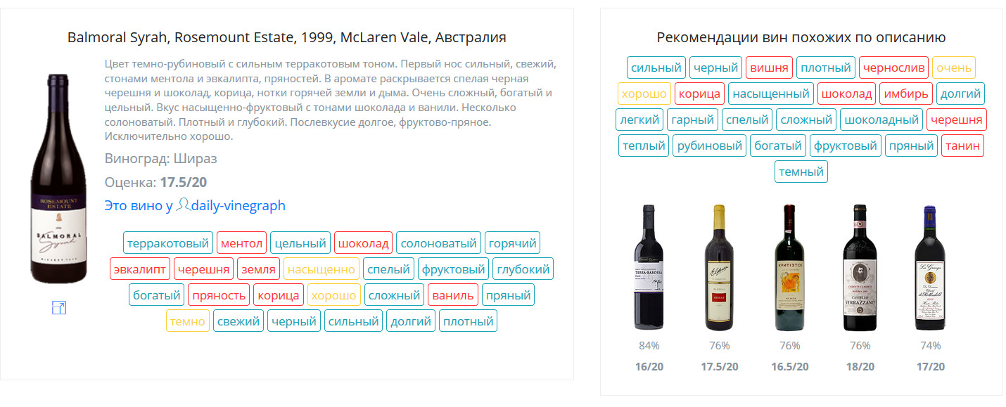 Но мне намного больше понравилась вторая рекомендательная система, составленная по дегустационным заметкам вин Дениса Руденко - "700 лучших вин по версии блога Винный Телеграф". Вот это вообще полный класс! Кому интересно - поразвлекайтесь.