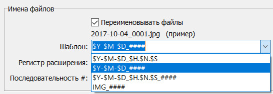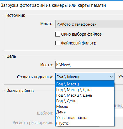 При необходимости задаем переименование файлов - например, по году, месяцу и дню.