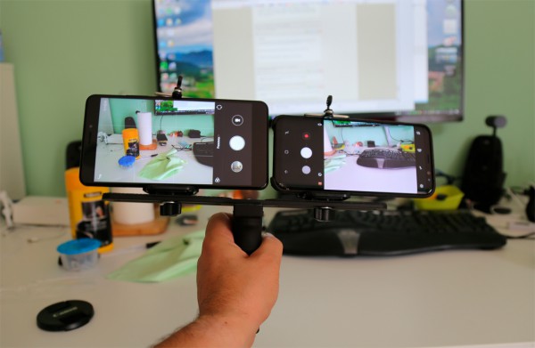 Помните спрашивал? Ну все, собрал себе такую бандурку для параллельной съемки с целью последующего сравнения. Смартфоны могут поворачиваться вокруг вертикальной оси, так что выстроить практически одинаковый кадр - не проблема. Поразвлекаемся, поразвлекаемся...