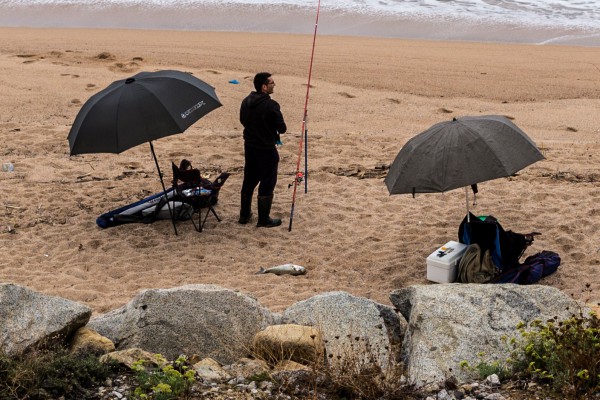 С окончанием купального сезона на пляжах начинают появляться рыбаки. Приносят по несколько удочек, забрасывают, ставят удочки вертикально и сидят себе на стульчиках, ожидая поклевки. Водку при этом не пьют, что странно. Даже риоху вроде не пьют, что уж совсем странно.