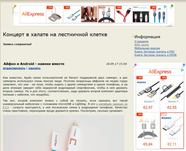 P.S. Скорость реакции Google просто поражает. Вот эта реклама у меня появилась в тот самый момент, когда я сохранил данную запись. В ту же секунду! Причем что в тексте не упоминается ни Ali, ни название производителя кабеля.