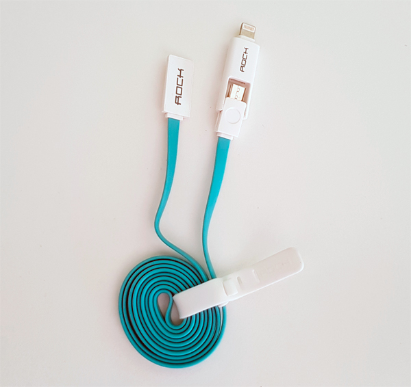 Так вот, второй комплект можно с собой не таскать, если заказать вот такой универсальный кабелечек с головками microUSB и Lighting. Я его у китайцев заказал за €3,5 - супруге пригодится, у нее московская симка в андроидном телефоне. Качество очень пристойное, переходник вроде держится крепко. Посмотрим, сколько проживет.