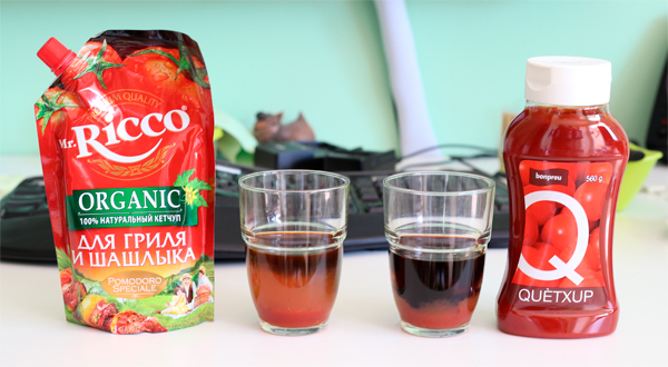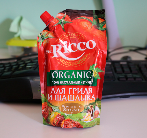 В Mr.Ricco утверждали, что они в свой кетчуп не добавляют ни крахмал, ни красители, ни консерванты. На вопрос, как он тогда у них хранится, они ответили, что кетчуп закачивается в упаковку под давлением и закрывается крышкой, в результате чего там не содержится воздух и кетчуп не окисляется.