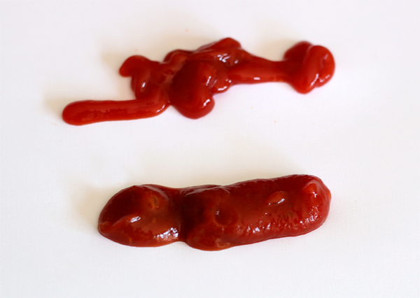 А как проверить кетчуп на присутствие крахмала - я знаю еще со времен работы на посудомойке в маевской столовой: туда надо капнуть йод. Если крахмал присутствует, йод вступит в реакцию и даст темно-синий оттенок - мы так тарелки проверяли на чистоту.