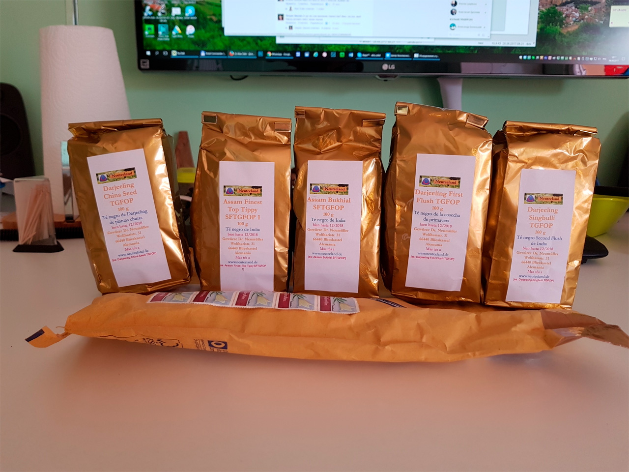 Приехали очередные чайные пробнички - попробовать подобрать что-нибудь новенькое. Хитрые немцы с сайта neuteeland.de пять соток чая отправили не посылкой, а в обычном почтовом конверте для документов - просто наклеили марок на него.