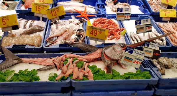 В местном "Ашане" в отделе морепродуктов (шикарном, кстати) сегодня обнаружился деликатес - рыба-меч! Причем местная, выловленная под Таррагоной. Рыбина здоровенная и дорогая, поэтому продают ее маленькими кусочками. Которые, кстати, быстро разбирают. Я успел урвать четыре кусочка - интересно было попробовать. Стоит она столько же, сколько и главный местный деликатес - филе рыбы-черта.