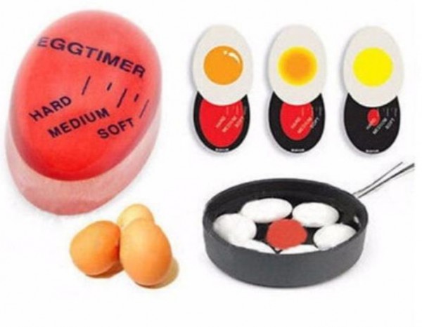 Забавный кухонный гаджет - Eggtimer. Размером с куриное яйцо, работает очень просто: его помещают в воду вместе с куриными яйцами, в процессе варки эта штука меняет свой цвет, показывая уровень готовности яиц.
