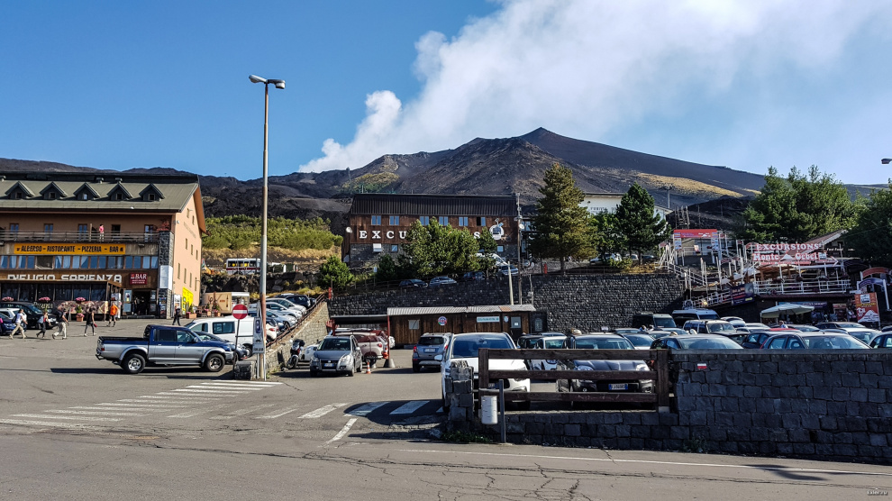 Этна - действующий вулкан, находящийся на Сицилии нендалеко от города Катани. Это самый высокий действующий вулкан в Европе. Высота его сейчас составляет 3329 метров над уровнем моря и он занимает площадь в 1250 квадратных километров. Для сравнения, площадь Москвы - 2511 квадратных километра.