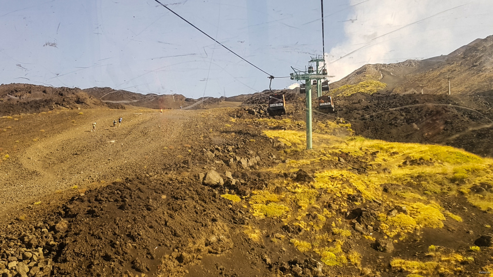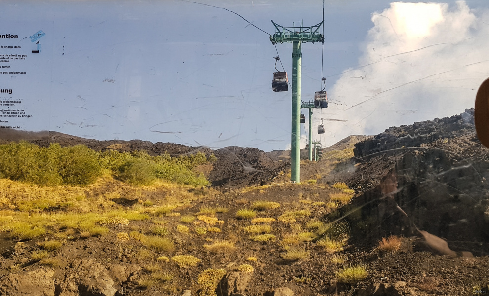 Перед подъемником небольшая очередь за билетами, но движется довольно шустро. Полный подъем, включая доставку к вершине на специалных автобусиках, обходится в 63 евро.