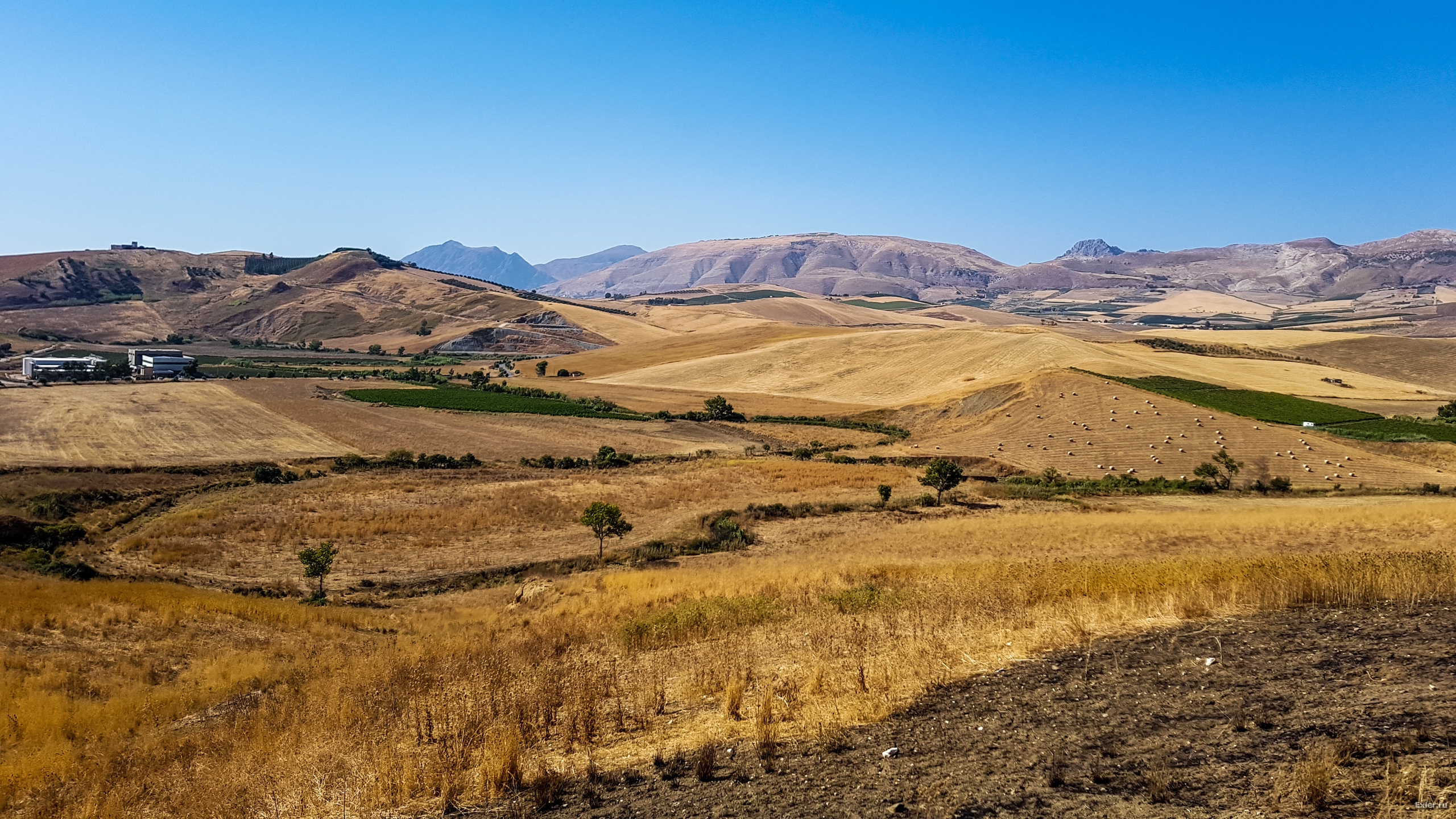 Сицилия в районе Корлеоне выглядит как-то так. Дорога как таковая очень красивая, но в этих краях просто на удивление грязно: на обочине валяется какой-то мусор, который никто не убирает, а в одном месте встретили целую мусорную свалку прямо у дороги.