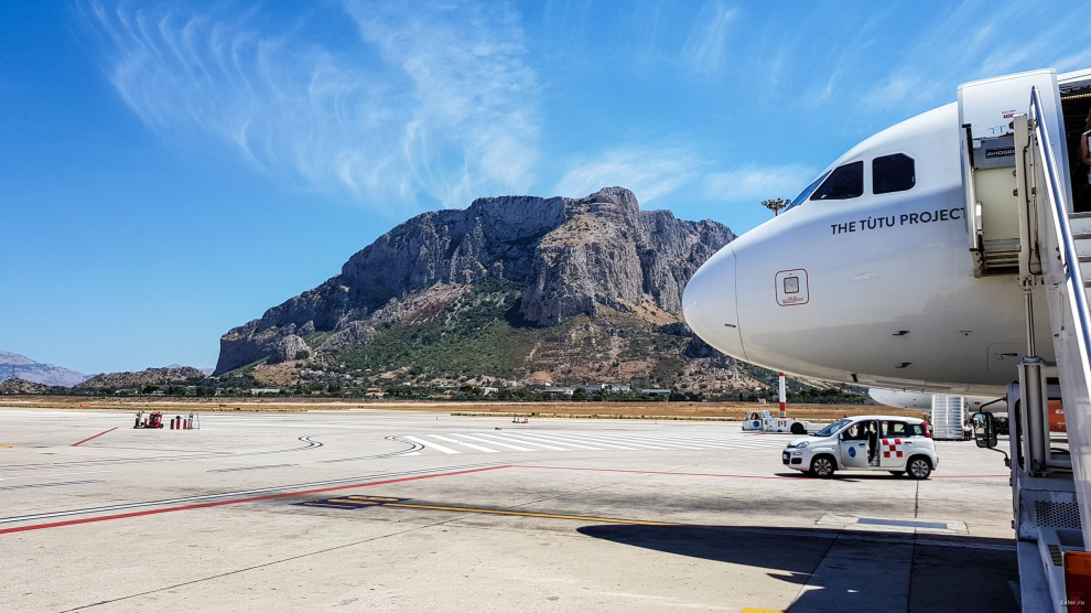 Сицилия в изрядно загрязненном окне иллюминатора самолета.