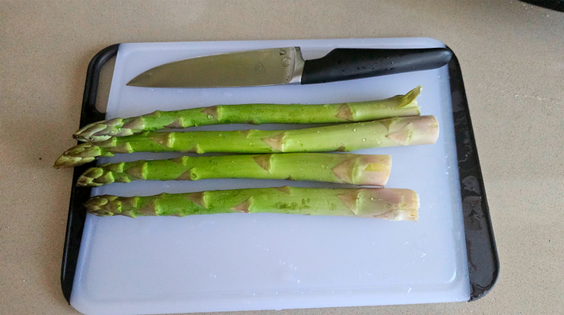 В наших краях свежая белая спаржа практически не продается (а вот во Франции я ее много где видел) - только в консервированном виде, зато этих консервов в самых разнообразных вариантах - полно. Свежей продается зеленая спаржа в пучках. Чаще она бывает довольно тонкая - я такую не люблю. Реже попадается уже более солидная - где-то 5-7 мм в диаметре, и вот такая мне уже нравится.