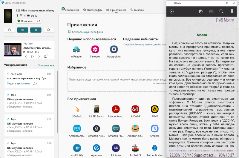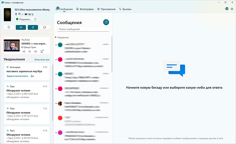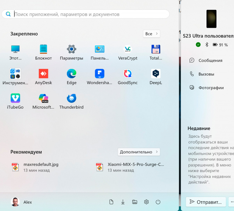 После очередного обновления Windows 11 в меню "Пуск" появилась связь со смартфоном. Оно и раньше работало с помощью соответствующего приложения "Связь со смартфоном", а теперь это очень удобно интегрировали в систему.