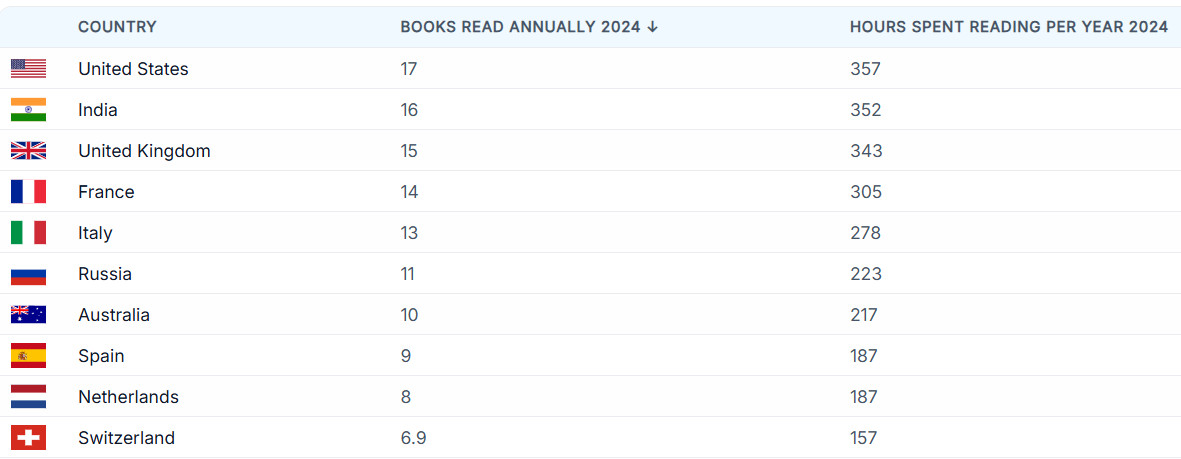 Попалось тут исследование World Population Review за 2024 год на тему того, какие страны сейчас являются самыми читающими в мире.