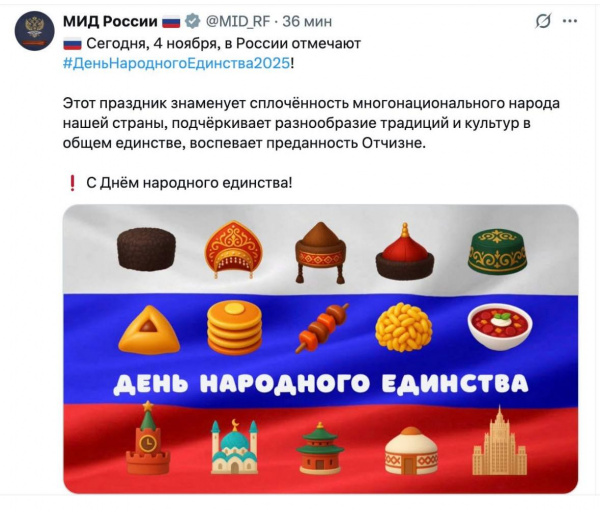Ну и вот так, по мнению МИД, выглядит это единство с разнообразием традиций и культур. Долго, наверное, думали над символами разнообразия.