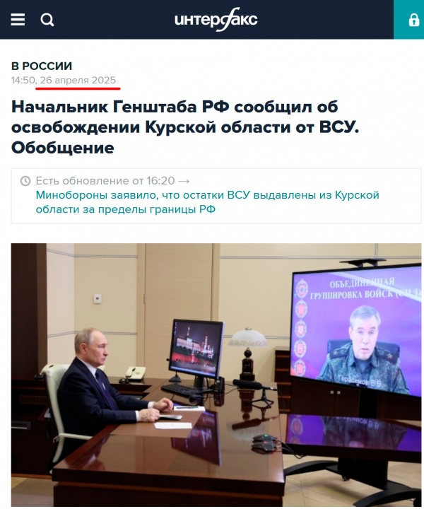 Правда, выяснилось, что Курская область еще не очень-то освобождена, но раз Герасимов доложил, то тут какие могут быть сомнения, правильно?