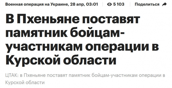 Зато товарищ Ын поставит памятник военным КНДР, не участвующим, по словам Пескова, в СВО.