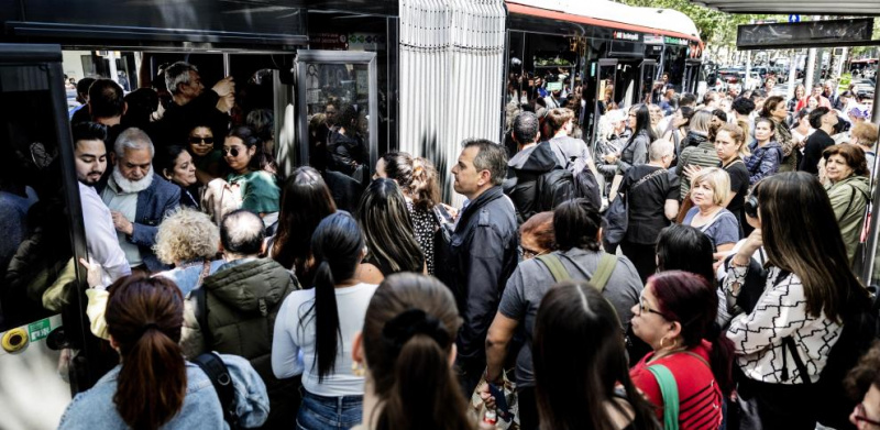 Люди ждут автобуса в Барселоне во время отключения энергии (Xavier Cervera / Propias)