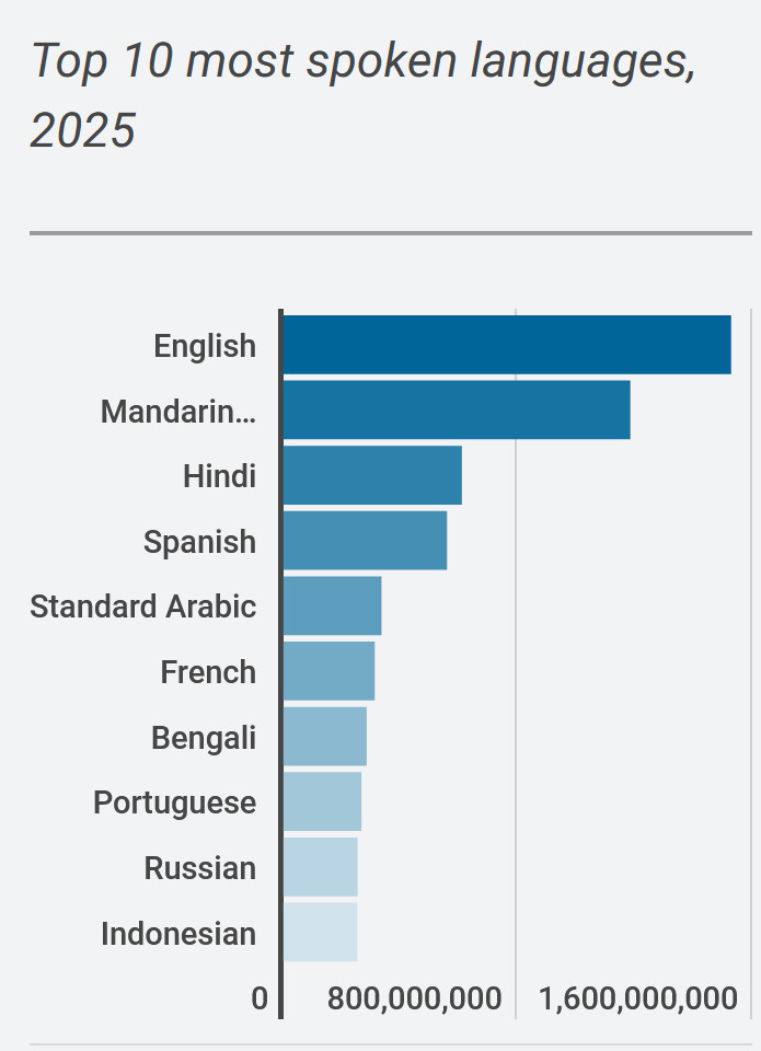 Странно, я считал, что китайский обгоняет английский. И что испанский с английским по распространенности более или менее похожи.