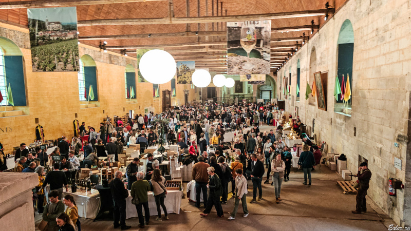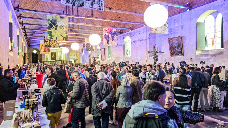 Для праздника основное помещение здания особождают от экспонатов, в нем располагаются виноделы, а также продавцы колбас, сыров и других продуктов местного производства. Народу на этом празднике - полно, можете видеть сами. Посещение праздника стоит что-то там порядка 11 евро, за дополнительный евро можно прикупить бокал для дегустаций. Но тут, к сожалению, не была предусмотрена подвеска для бокала, а свою подвеску взять из дома я не догадался. (Когда бокал держишь в руке, то крайне неудобно фотографировать.)