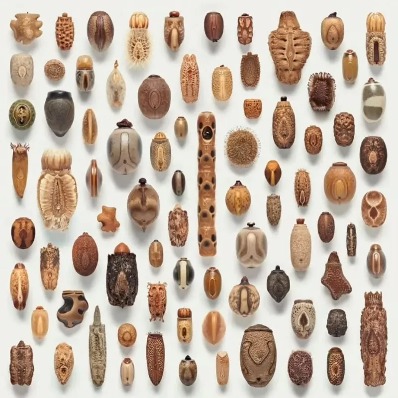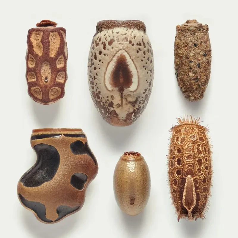 Это реальные яйца фасмид - жуков-палочников. Каждое из этих яиц не превышает 3 мм в длину. И смотрите какое разнообразие!