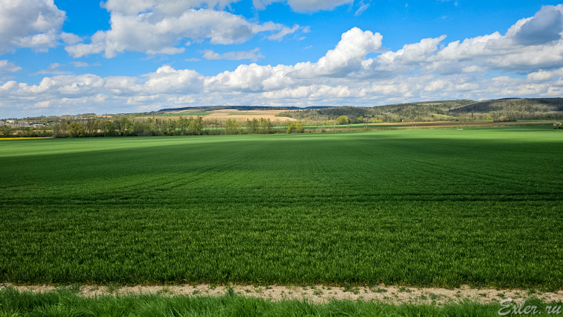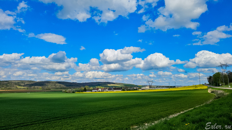 Здесь сейчас вовсю цветет рапс, и желтые поля с рапсом очень оживляют местные пейзажи.