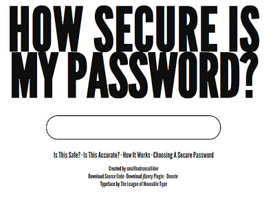 У Виталия обнаружил ссылку на очень полезный сервис. Щелкните по картинке и проверьте свои пароли. Сервис определит, сколько времени потребуется обычной десктопной машине, чтобы ваш пароль вскрыть.