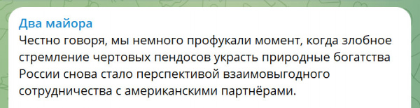«Мы готовы привлечь иностранных партнеров и на так называемые новые, наши исторические территории, которые вернулись в состав Российской Федерации. Там тоже есть запасы [редкоземельных ресурсов] определенные. Мы готовы с нашими партнерами, в том числе с американскими, работать», — сказал он (цитата по «Интерфаксу»). (Отсюда.)