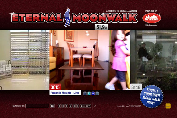Отличный сайт памяти Майкла Джексона - www.eternalmoonwalk.com. Люди со всего мира изображают знаменитую "лунную походку". Вы можете также добавить свой ролик.