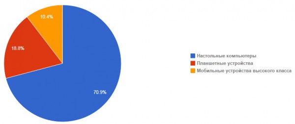 Еще интересная, на мой взгляд, диаграмма - доля в доходах мобильных устройств и планшетов.