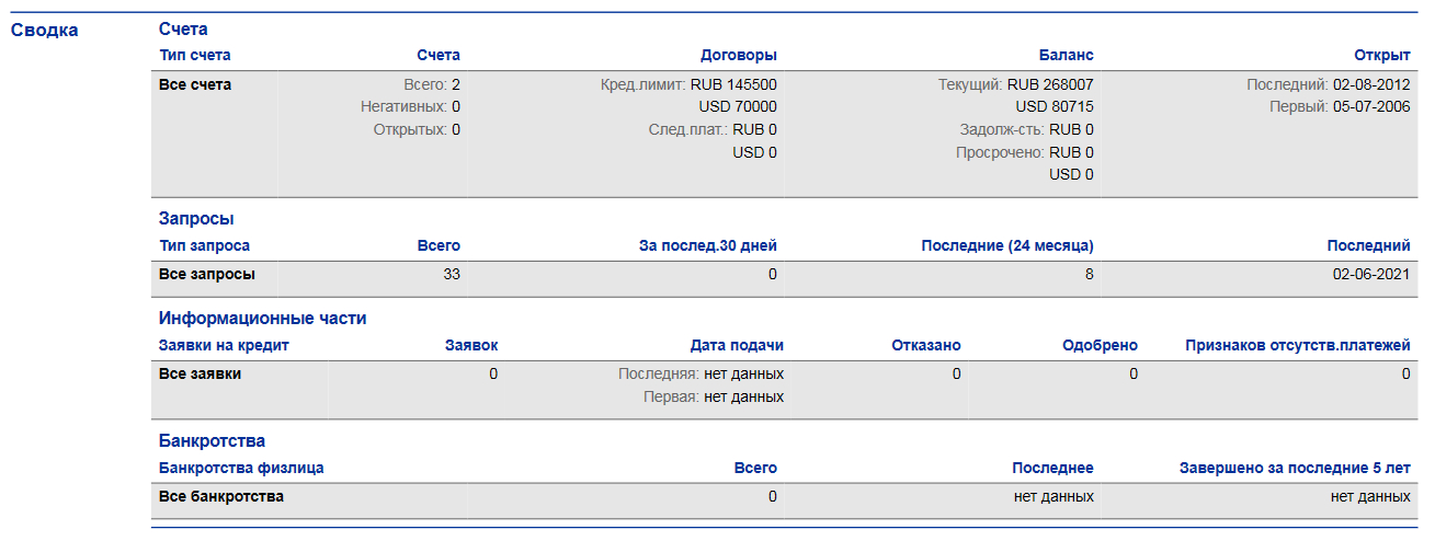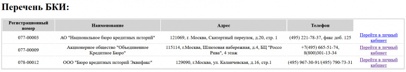 Список придет примерно в таком виде, и можно будет посмотреть историю по всем БКИ.