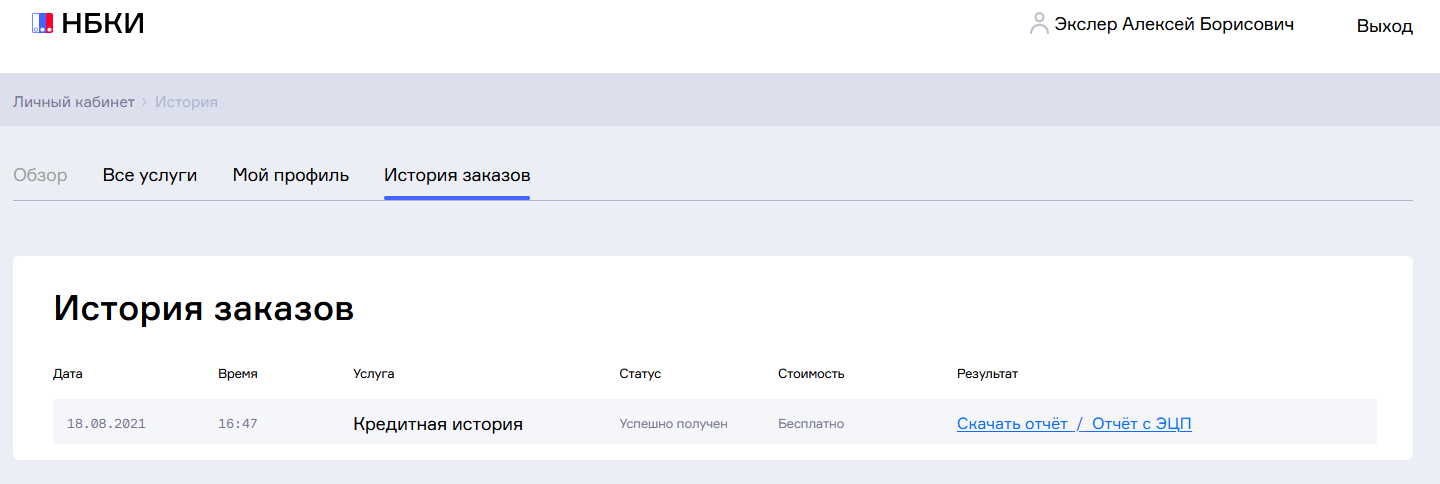 Нажимаете в "Кредитной истории" кнопку "Получить бесплатно" - в "Истории заказов" появится соответствующий отчет.