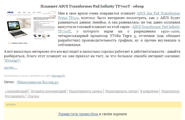 Что тут получается в итоге? А в итоге получается полный бред. То есть мне, как владельцу блога, дается (небесплатно, замечу, а за процент с рекламы) механизм размещения промо-блоков. При этом: