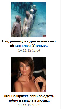Пришло предложение от "Селекторньюс" организовать обмен новостным трафиком. А этот "новостной трафик" от селекторов и прочих маркетгидов - известное дело. Максимально идиотский заголовок, рассчитанный на тупое быдло ("Семенович наконец-то показала сиськи", "Смерть Вахтанга Кикабидзе", "Бодров-младший оказывается жив"), переход на еще более идиотскую статью примерно в 20 кликов с открытием заодно десятка рекламных окон со всяким дерьмом и прочие радости. Такие "информеры" себе ставит всякая желтизна, сайты "приколов гы-гы", торрент-трекеры и так далее.